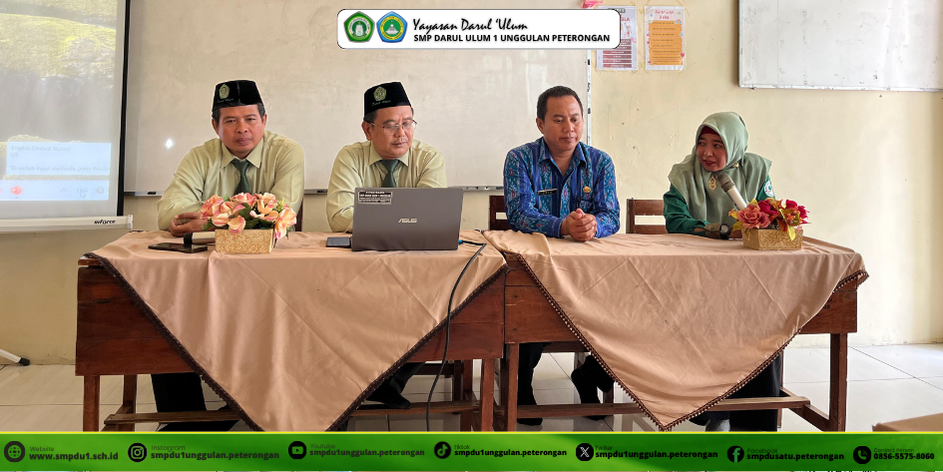 Jombang – SMP DARUL ULUM 1 UNGGULAN PETERONGAN kembali menjadi rujukan dalam pengembangan pendidikan, khususnya dalam pembinaan keterampilan berbahasa Inggris. Pada hari Selasa, 10 Juni 2025, sekolah ini menerima kunjungan dari Musyawarah Guru Mata Pelajaran (MGMP) Bahasa Inggris Kabupaten Sidoarjo.